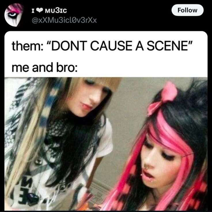 Panic! at the disco, Pierce The Veil, picture me broken, billie eilish, never shout never, avril lavigne, all time low, brokencyde, the offspring, my chemical romance, bring me the horizon, SOME blood on the dance floor fucking hate the guy though, fall out boy, the used, 5 seconds of summer, 3OH!3, alex g, sleeping with sirens, sleep token, falling in reverse, escape the fate, Attack! Attack, scotty vanity, jj demon, get scared, the fall of troy, cascada, ohemgee, let's get it, scene kidz, sky eats airplane, hand shake and highfives, breath carolina, us from outside, a skylit drive, jeffere star, dot dot curve, stereos, hollywood undead, hyper crush, the medic droid, the secret handshake, abandon all ships, from first to last, watchout! there's ghosts, jamestown story, kill paradise, rookie of the year, swimming with dolphins, the scene aesthetic, stephen jerzak, plug in stereo, cady groves, chris drew, spanky, and then there were none, secondhand serenade, chase coy, the years gone by, the morning off, playradioplay, romance on the rocketship, sex whales, a smile from the trenches, drama club rejects, all american rejects, the bunny the bear, scenecore, love hate hero, the drama scene, lizzy murder, scene queenz, blood on the mircophone, the vanished,Call The Cops, farewell my love, design the skyline, captain midnite, asking alexandria, sparks the rescue, there for tomorrow, the white tie affair, love arcade, hellogoodbye, danger radio, metro station, family force 5, i see stars, a day to remember, drop dead gorgeous, scary kids scaring kids, taking back sunday, brand new, jimmy eats world, paramore, good charlotte, boys like girls, simple plan, the red jumpsuit, afi, the academy is..., gym class heros, cute is what we aim for, The Cab, The Maine, Mayday Parade, We The Kings, Forever The Sickest Kids, Artist Vs Poet, The Summer Set, The Friday Night Boys, The Downtown Fiction, Hit The Lights, Every Avenue, Valencia, Cartel, My Favorite Highway, This Providence, Holiday Parade, The Higher, Brighten, Between The Trees, The Graduate, Houston Calls, Sing It Loud, Farewell, Quietdrive, The Starting Line, The Rocket Summer, Daphne Loves Derby, Mae, Copeland, Straylight Run, The Early November, Armor For Sleep, Anberlin, Acceptance, The Spill Canvas, Hidden In Plain View, JamisonParker, This Day & Age, Something Corporate, Jack’s Mannequin, The Hush Sound, Forgive Durden, The Venetia Fair, Foxy Shazam, Ludo, The Matches, Showbread, Portugal. The Man (early emo era), Tickle Me Pink, Dear And The Headlights, As Tall As Lions, Lovedrug, Spitalfield, Motion City Soundtrack, Sugarcult, The Ataris, Relient K, Plain White T’s, Yellowcard, Story Of The Year, Finch, Senses Fail, Silverstein, Chiodos, Saosin, Underoath, Emery, Alexisonfire, From Autumn To Ashes, Thursday, Funeral For A Friend, Boys Night Out, Greeley Estates, Alesana, Drop Dead Gorgeous (early EPs), Fear Before The March Of Flames, Before Their Eyes, A Static Lullaby, Woe, Is Me, The Word Alive, Bless The Fall, Pierce The Veil (again for emphasis), A Skylit Drive (early), Design The Skyline (scene-core legend), I Set My Friends On Fire, The Color Morale, Jamie’s Elsewhere, Of Machines, A Bullet For Pretty Boy, Agraceful, Casino Madrid, My Hero Is Me, Broadway, Kid Liberty, Farewell Dreamer, The Bigger Lights, Take The Crown, Versus The Ocean, Destry, Go Radio, Rookie of the Year (early EPs), Lydia, The Scene Aesthetic (full band version), Valencia, and The Summer Obsession, Ohmegee