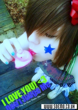 Hi, I am Hannah Marie Hixson. I'm a very shy girl. I am 14 years old, going to be 15 July 1st. I am 5' 4" yes, I am short. Don't make fun of me. I have short hair and it is different colors at the moment. Brown, red, black, and blonde. (: Don't worry, It'll be all one color soon. I am in the 9th grade. I love singing. I love drawing, but I don't do much of it anymore. It seems like a waste of my time anymore. : / I am funny. I have a good sense of humor. I am kind of fat. Don't hate. I don't take crap form anyone. If i hear you have been talking crap behind my back, I will make sure you regret it. I am confident in my fighting skills. I want people to like me for me and not the way I look. Just because I wear a lot of makeup, doesn't mean I'm awesome and I act the way I look either. I am unpredictable, but then again i am. I fall easily for people. I have addictions. I have some problems, but im awesome. <3 I love yooh. :3333 ask me questions, inbox me, whatever. (: