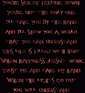 *Cut my wrists and black my eyes, so I can fall asleep tonight...